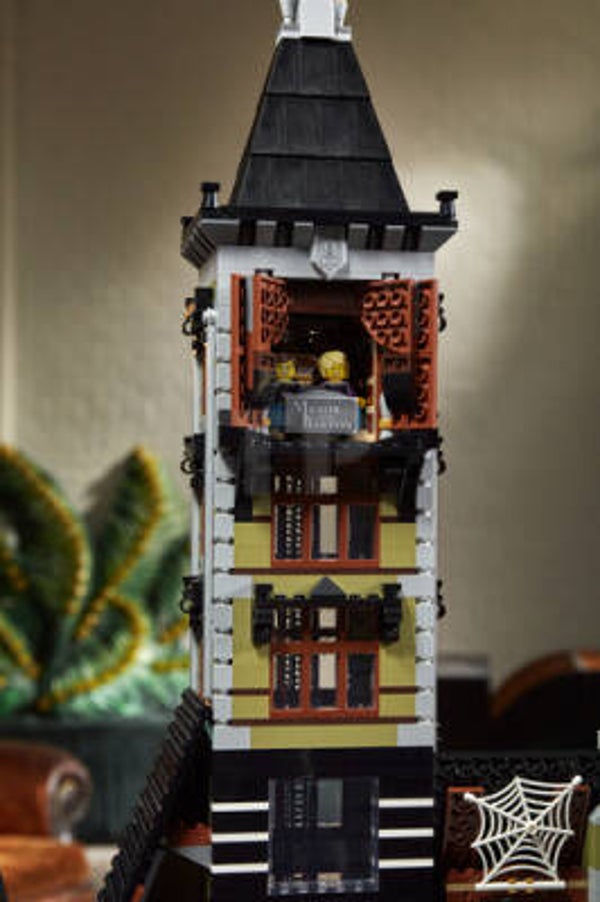 Beleef uren bouwplezier met dit indrukwekkende spookhuismodel en bewonder alle mooie details die in dit spookhuis verborgen zitten. Het huis kan open, waardoor je de binnenkant eenvoudig kunt bekijken. Hier ontdek je een werkende vrije val-attractie en automatische deuren boven op de toren. Zie hoe de behekste voordeuren dichtgaan voor een spookachtig effect.